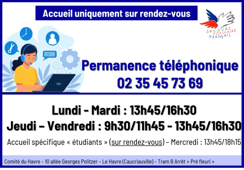 Permanences de l’accueil téléphonique (02 35 45 73 69)
