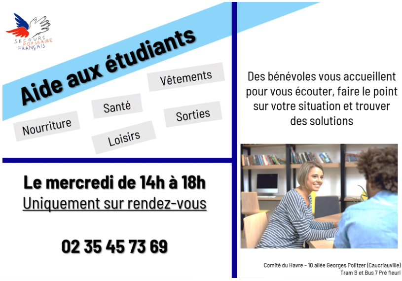 Situé 10 Allée Georges Politzer (dans le quartier de Caucriauville), nous accueillons les personnes de toutes conditions, quelles que soient leurs opinions politiques, philosophiques ou religieuses, pour leur apporter de l’aide selon leurs besoins.